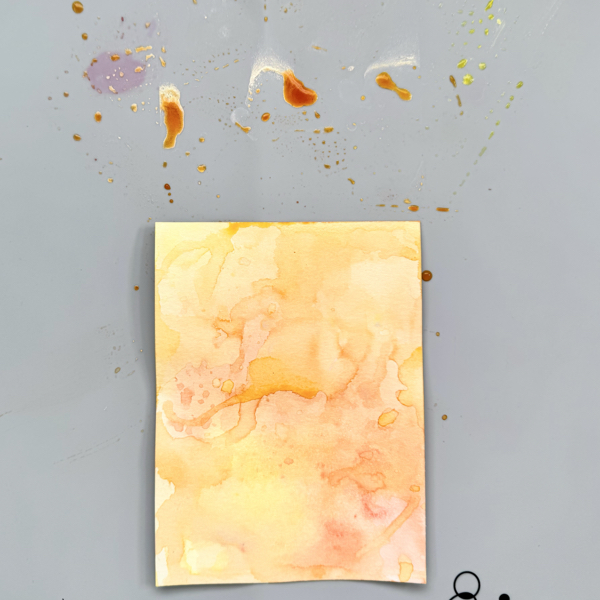 Spray more water on it and smoosh a piece of watercolor paper on it to get another watercolored background panel.