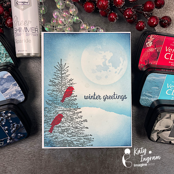 Hello Friends! Katy here with my latest video using a color palette of blue and gray VersaFine Clair inks to create a simple winter scene. This design is great for winter birthday cards or simple greetings. Video has all the details. Thanks for watching.