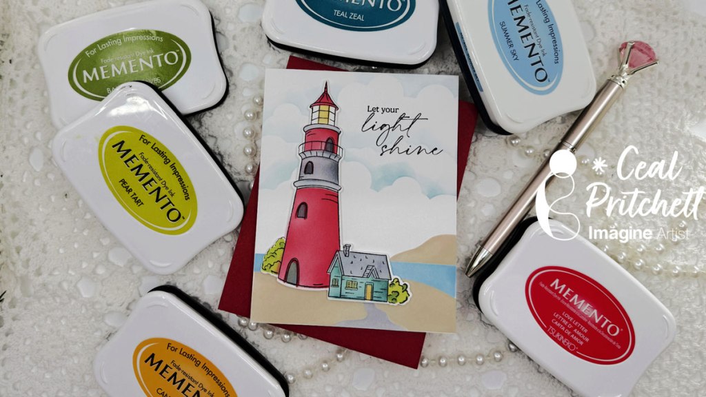 It’s Ceal, here. Today I am sharing how to make this beautiful light house card using supplies by Pinkfresh studio and Memento Inks.