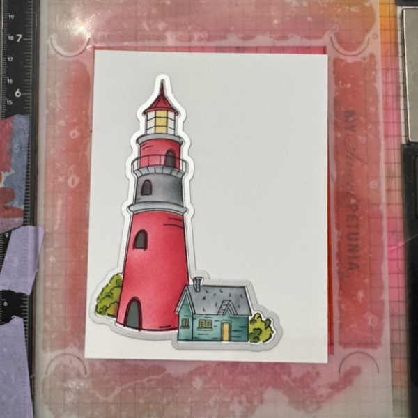 Add a sentiment to the panel and adhere the finished panel to the card base popping up the lighthouse.