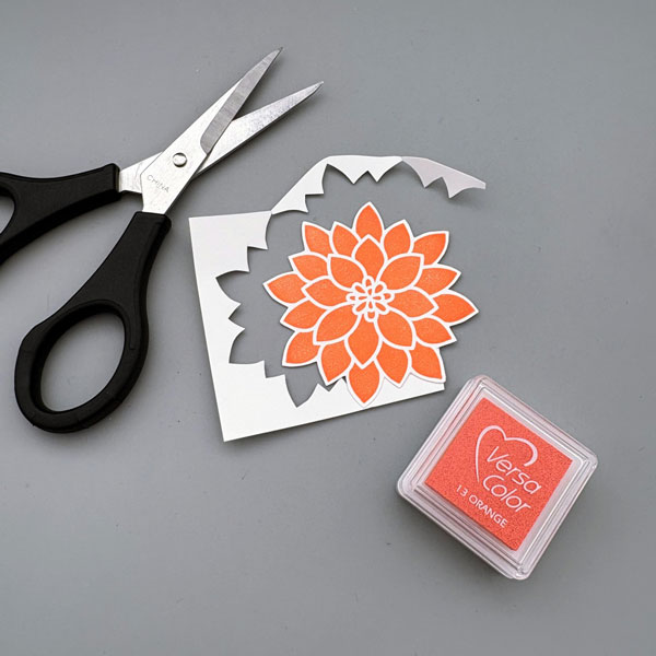 I stamped another flower image on a scrap piece of cardstock and fussy cut it along the edge.