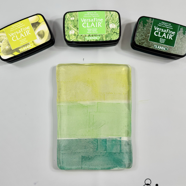 Dab some of the VersaFine Clair inks on the gelli printing plate, do this one color at a time and do not mix them together.