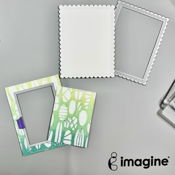 Once the printed background dried well, cut it with a rectangle die form the Stitched Rectangle dies set.