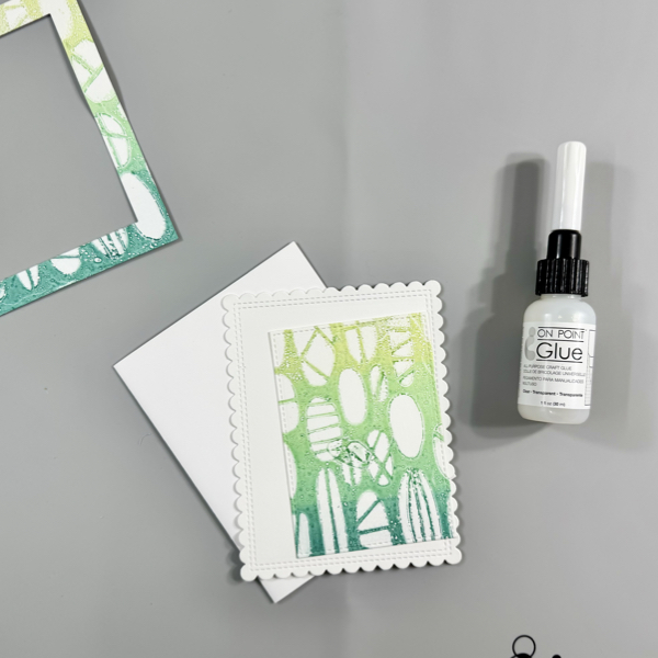 Add the white scallop background panel to the card base using the On Point Glue.
