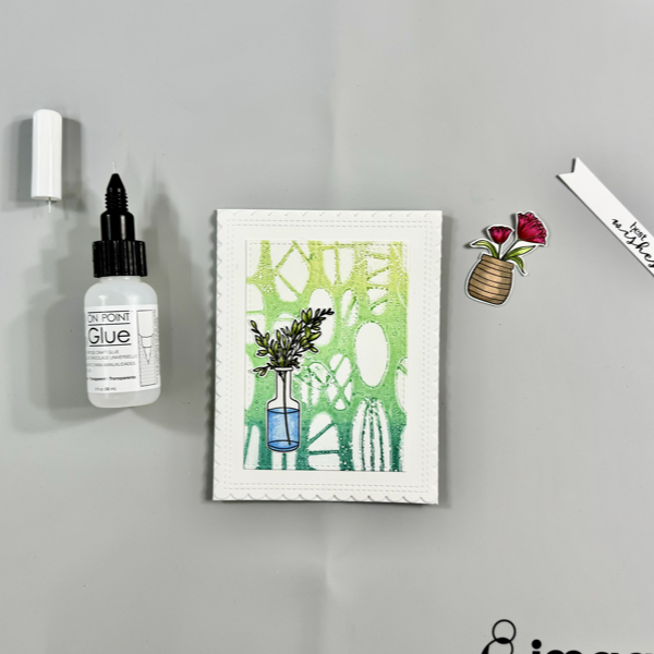 Add the first flower to the card with On Point Glue.