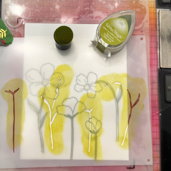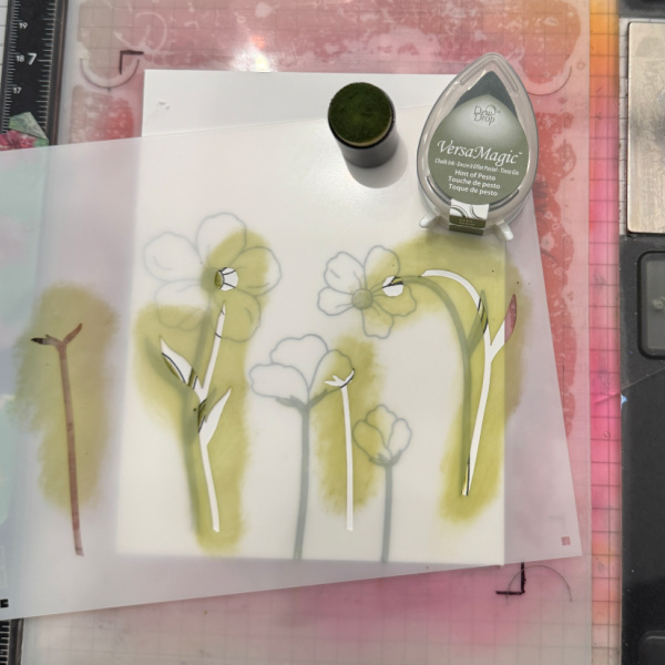 Stencil two is a darker green. I used VersaMagic Touch of Pesto