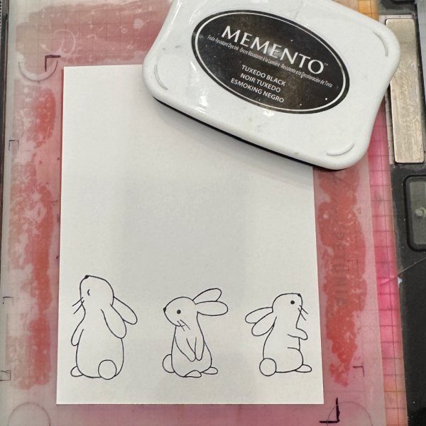 Stamp the bunnies using a black ink. I used Memento Tuxedo Black.