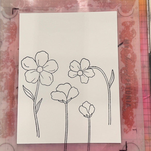 Stamp the flowers in a black ink. I used Memento Tuxedo Black