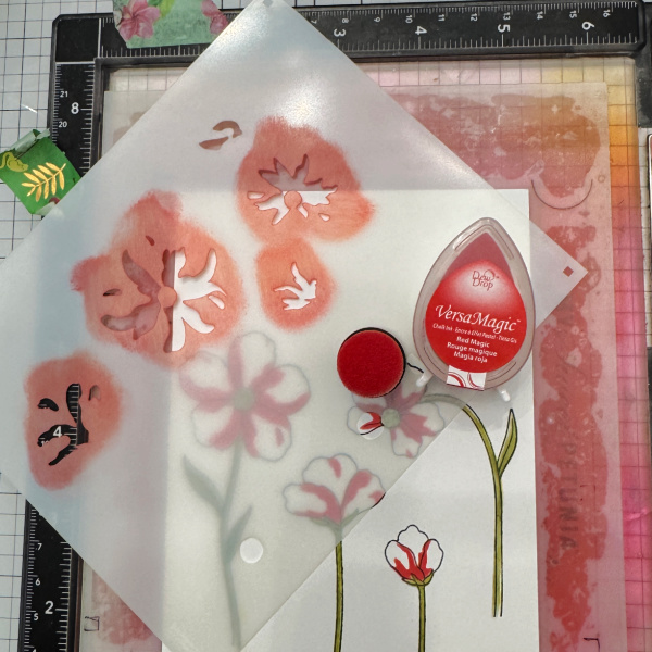 Stencil three is a dark red. I used VersaMagic Red Magic.