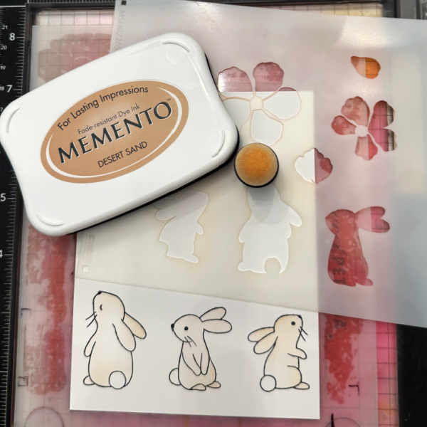 Using the coordinating stencil color the bunnies a light brown. I used Memento Desert Sand.