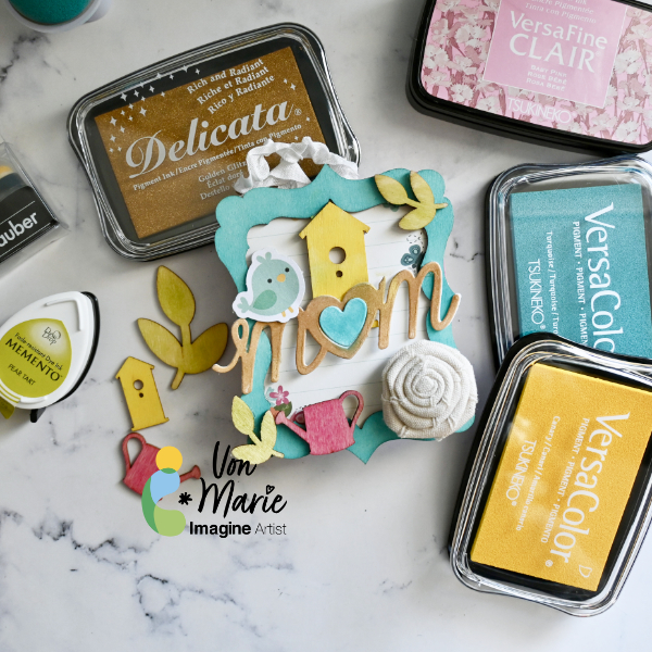 Hello everyone. Von Marie here with my latest project. I chose to make a Mother’s Day Home Decor project today. I used wood veneers and frame and some Beautiful VersaColor inks, and Delicata Golden Glitz to help me make this project fun and colorful. This project is great for a gift or for yourself as a decoration for your craft room. You can even switch it up and make it a Christmas project or anytime project. The video will have all the details. Thank you for watching.
