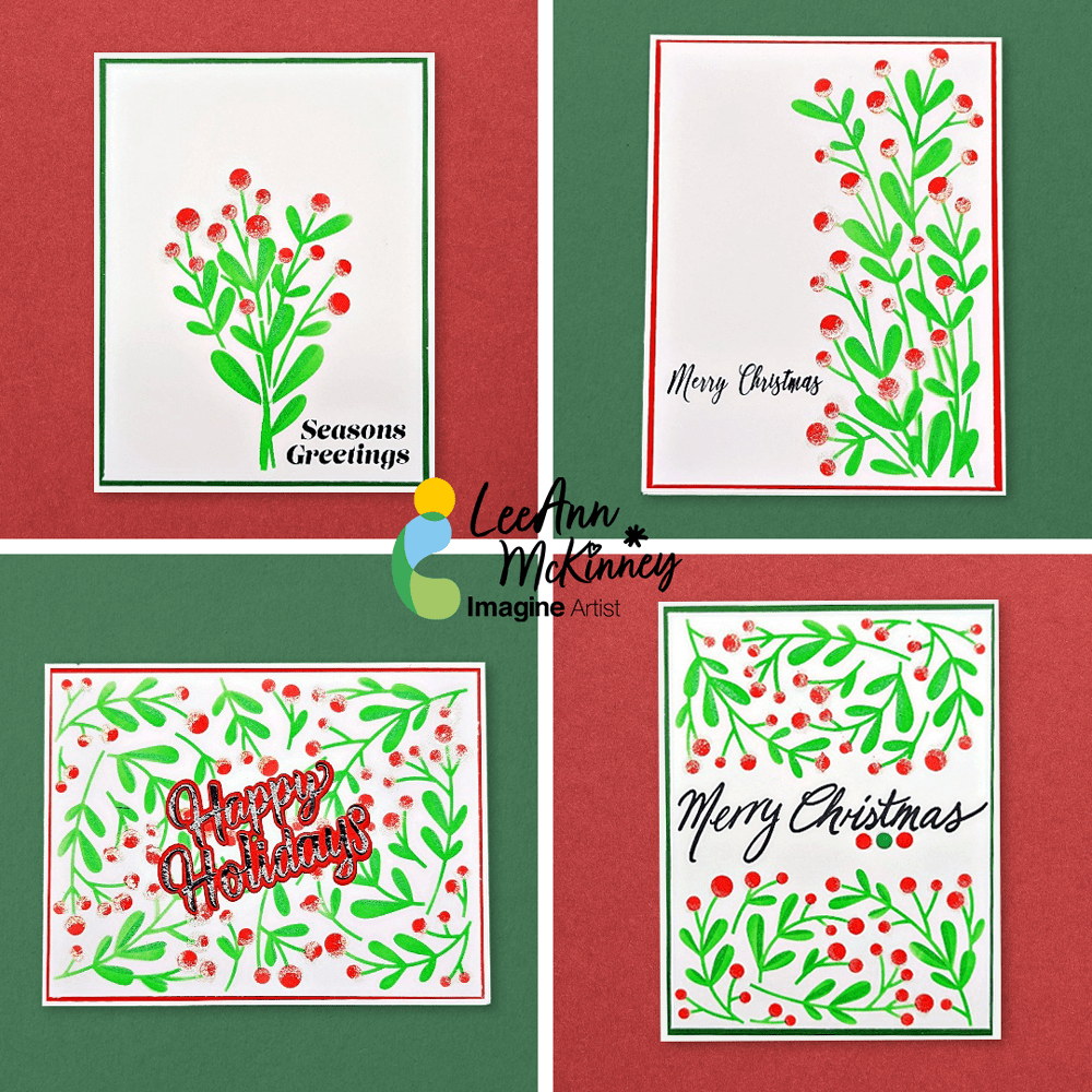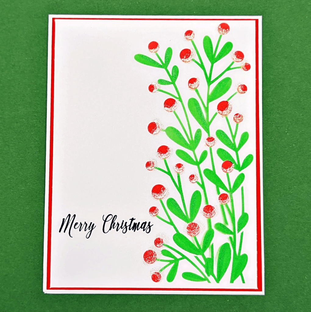 Once completely dry, (just takes a couple minutes) line back up and go over stencil 4 again this time with Shimmer Stix Dauber in Sparkle. This will add just a little sparkle to accent the berries on this wonderful Mistletoe.