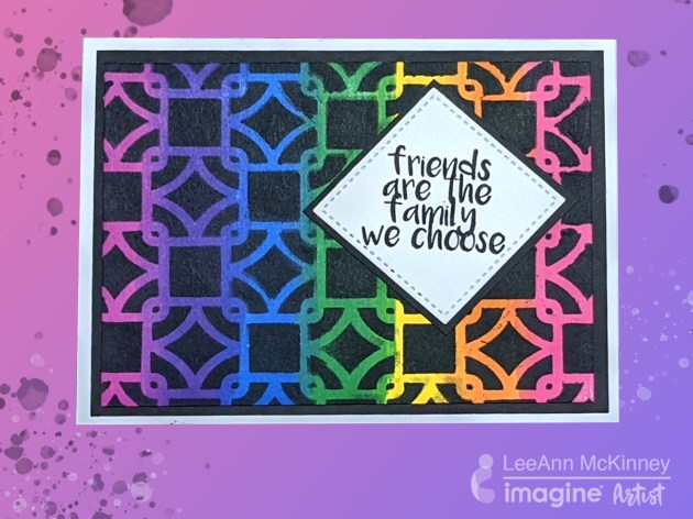 Greetings crafty friends, today I am using my FAVORITE ink pad — Kaleidacolor. This 5-color water-based dye ink pad is very useful for a basic crafting project because it offers a variety of colors and the sliding palette feature gives you a lot of options. The ink pad has a lever to slide each ink pad together and then to pull apart for storing.
