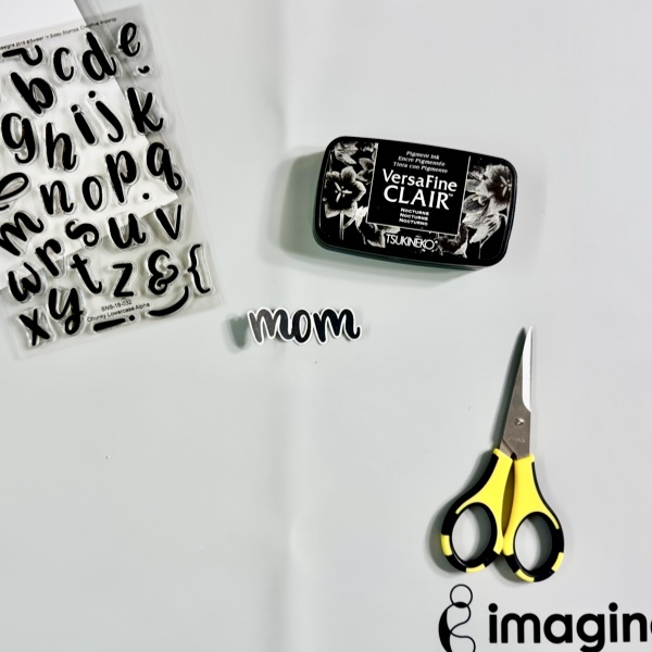 Write lightly the word “Noel” (or any word you want on your ornament) with pencil and then trace it with the Tuxedo Black Memento Marker brush tip. You can skip the pencil if you can do handlettering directly with the marker.