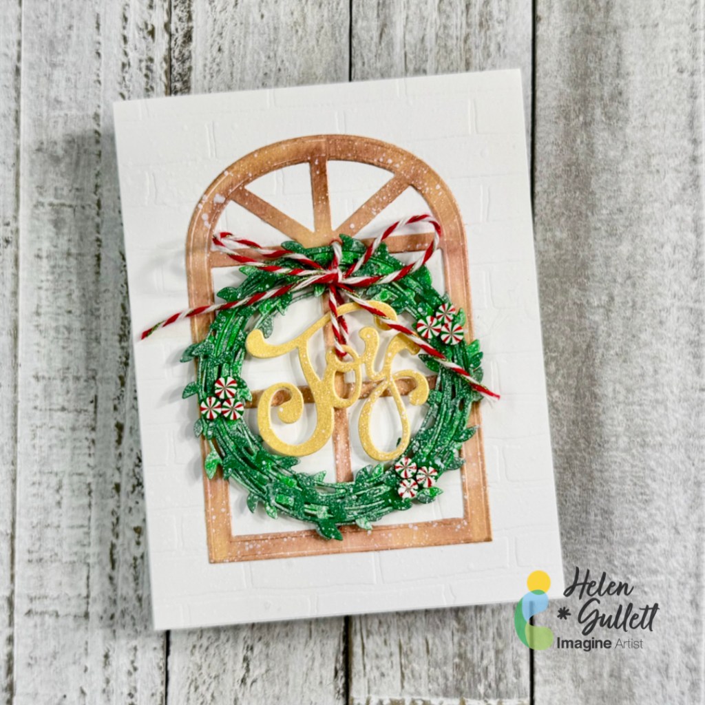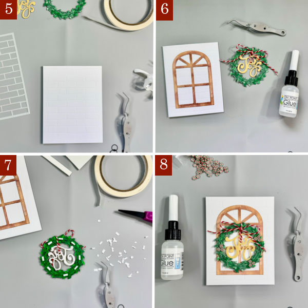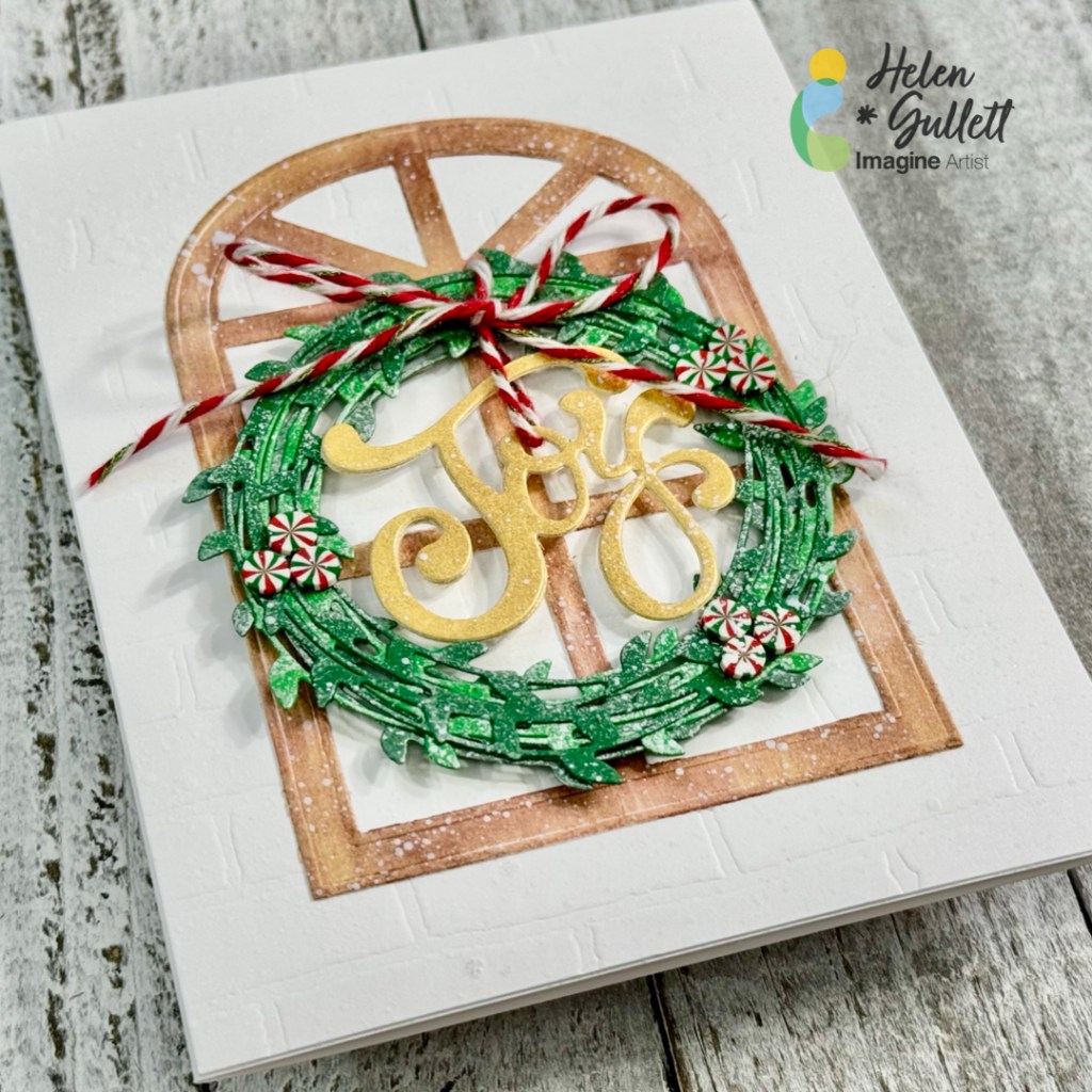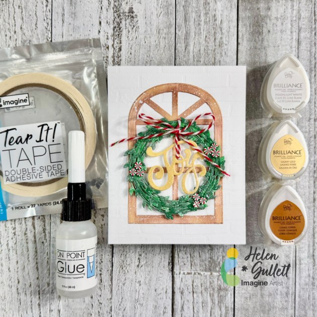 Stamp the holly leaves and berries using StazOn Opaque – Cotton White on the ornament around the sentiment using the stamping tool or small stamping blocks.