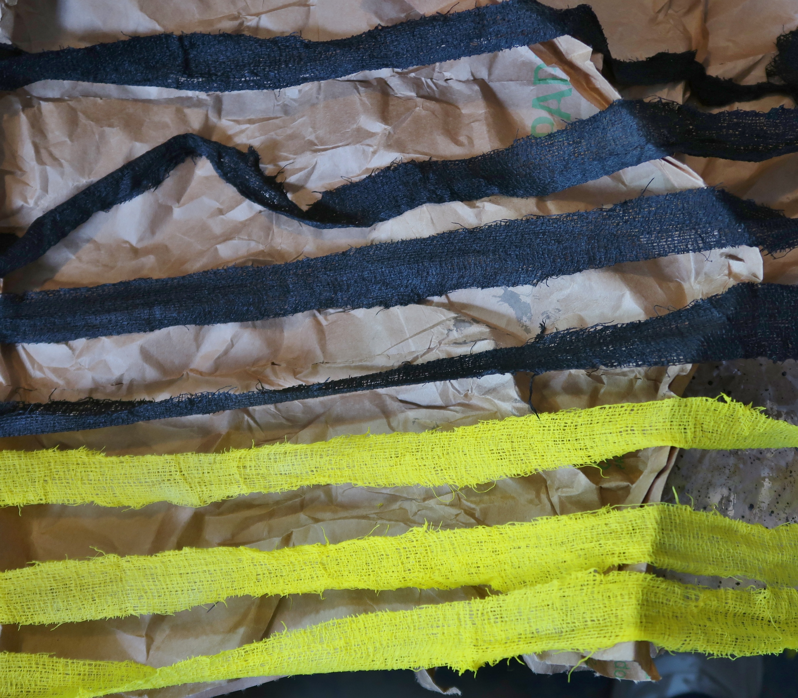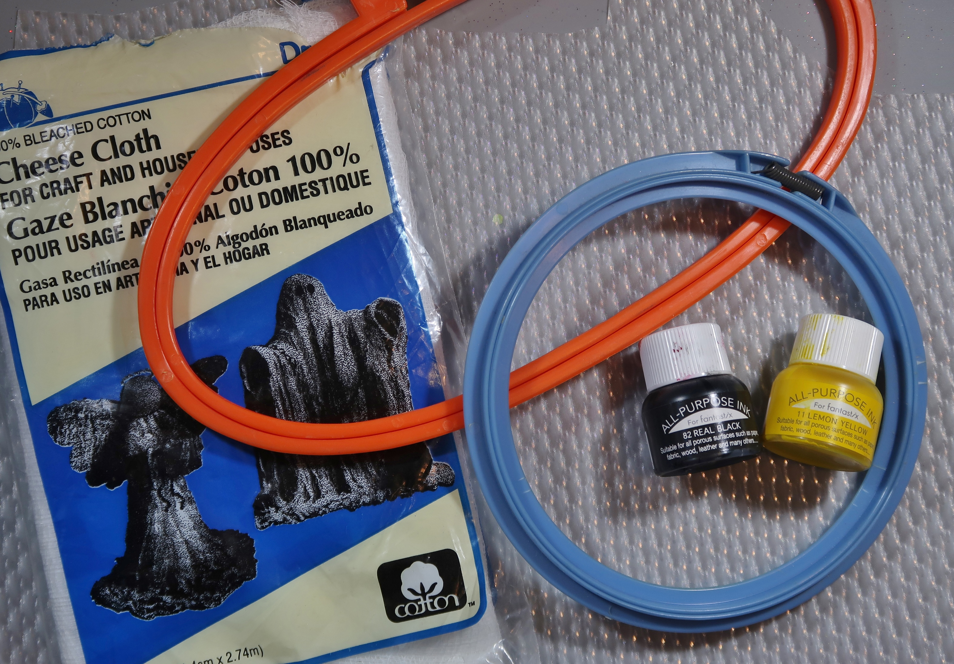 Remove the dyed cheesecloth strips from the baggies, unfold and place over a protected surface. Allow the cheesecloth strips to dry completely.