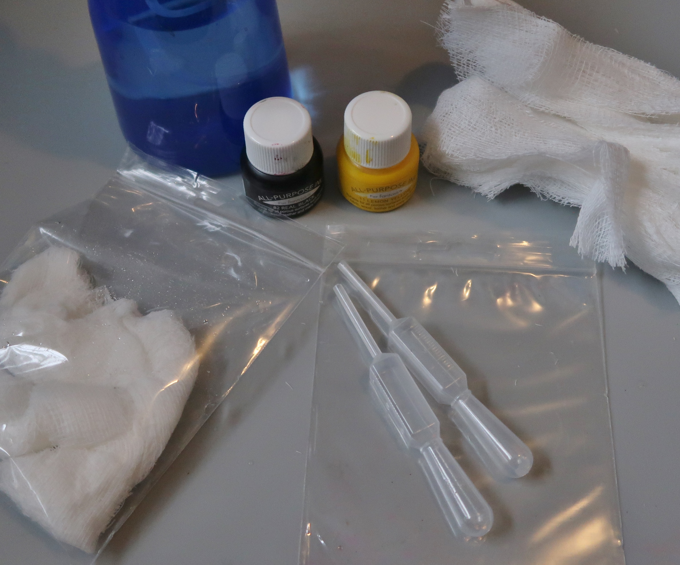Seal the bag and smoosh the ink around until all of the cheesecloth has been colored.