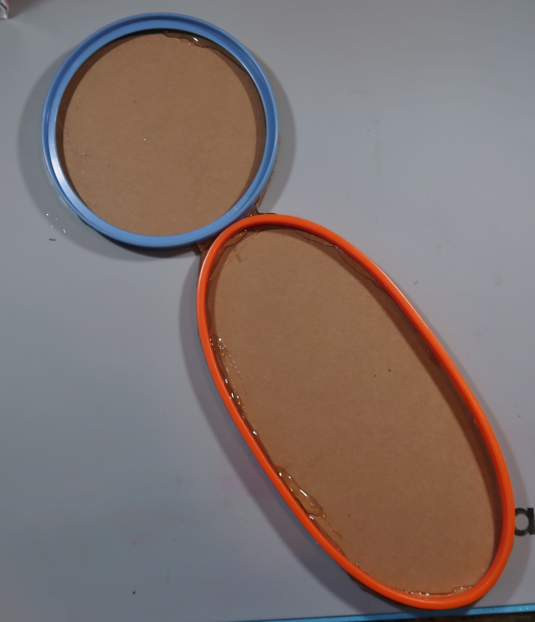 Place the embroidery hoops on a piece of cardboard and trace around the shape x 2.