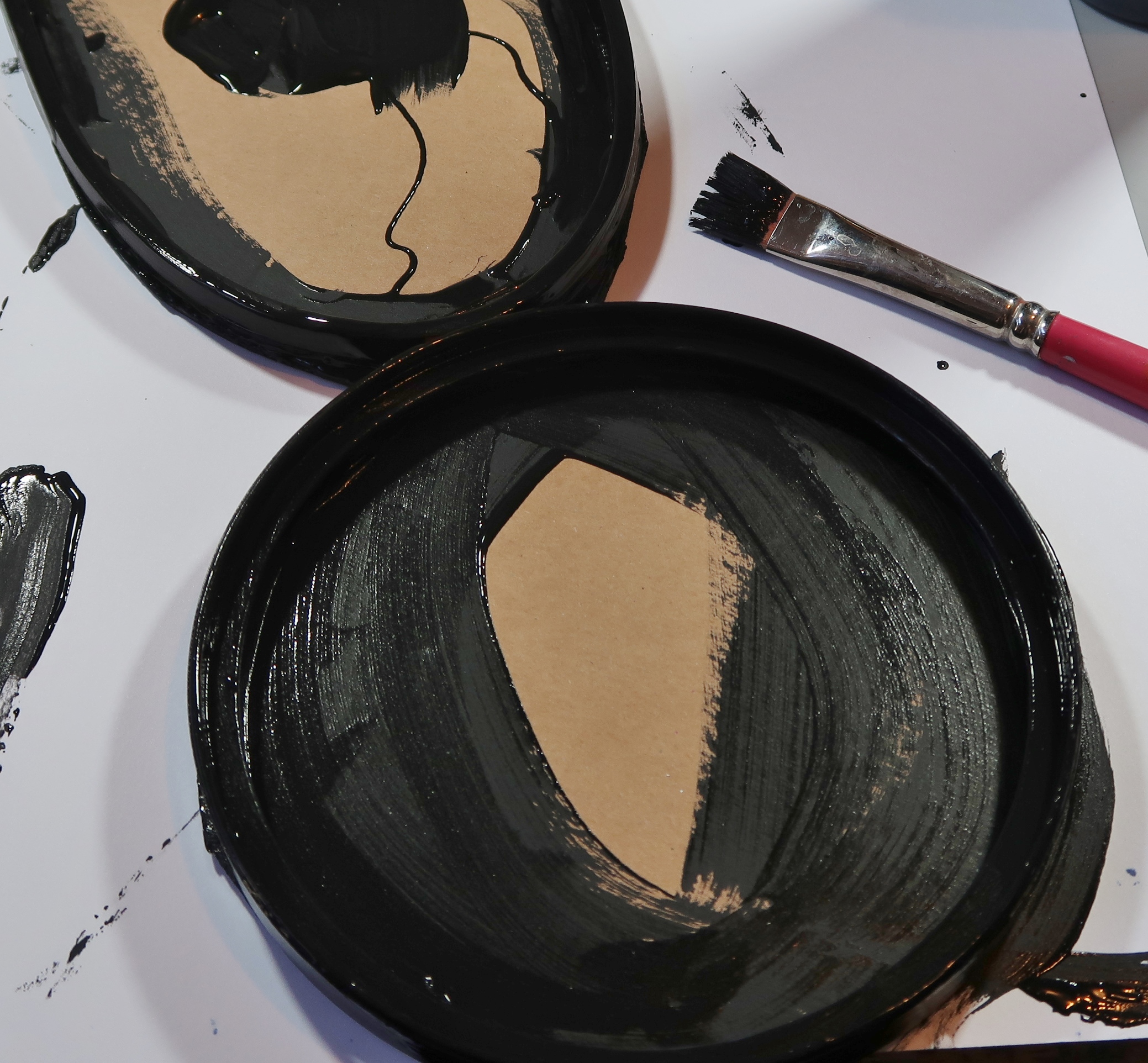 Paint the hoops and cardboard with a coat of black acrylic paint.