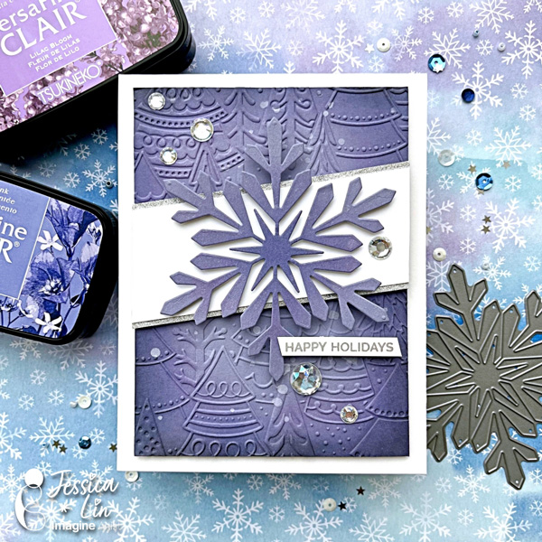 Hi everyone, it’s Jessica here. Have you seen the latest addition of colors for the VersaFine Clair ink line? I am a big fan of the VCF inks and am swooning over the new pastel colors. There are some really gorgeous shades of purples and blues, which are perfect for today’s wintery themed card. Let’s get started!