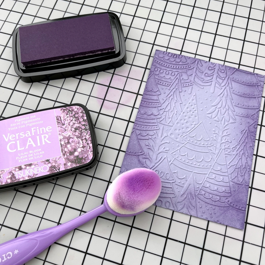 Step 2: Ink blend the edges of the embossed panel with Lilac Bloom VersaFine Clair ink. I like to dab off excess ink on my craft mat before blending onto the cardstock so that there would be no harsh lines. I also tried to ink blend in a circular motion to create a spotlight effect.