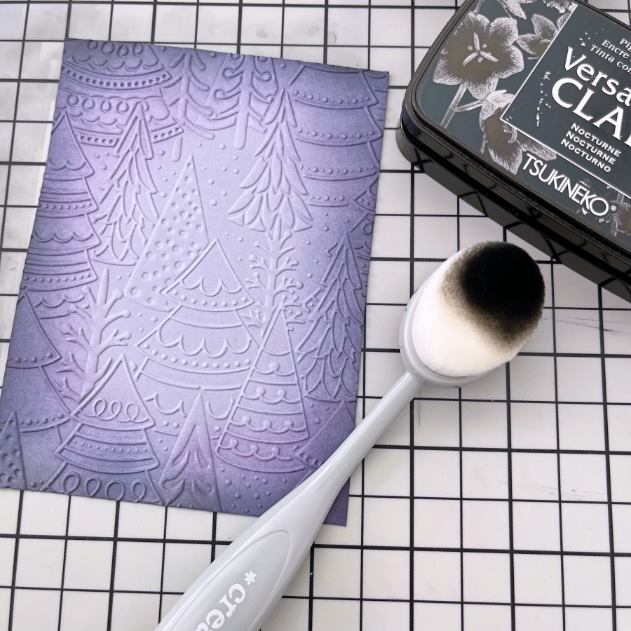 Step 4: I ink blended a small amount of Nocturne VersaFine Clair ink to add a dramatic feel to this forest scene.