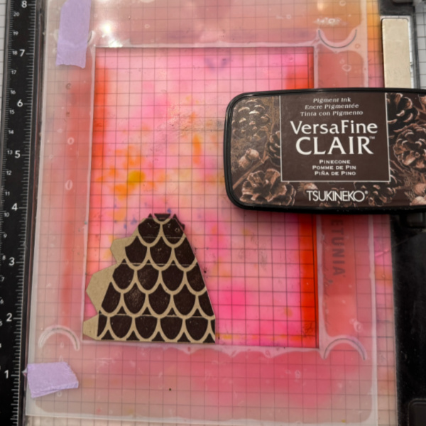 Allow to dry or dry with a heat tool. Then press the edges of the ornament into the ink pad. Allow to dry.
