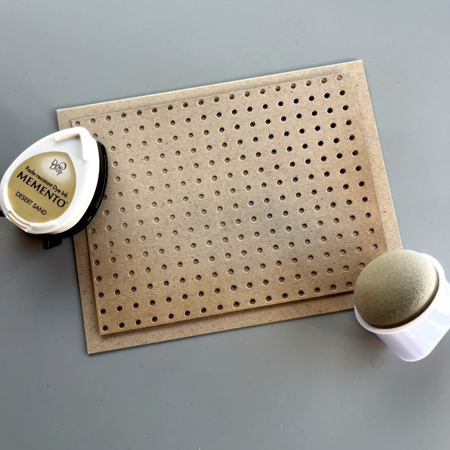 The Jumbo Dauber is also a great blending tool. I used Desert Sand Memento Ink to add some shadows to the bottom edges of the pegboard piece.
