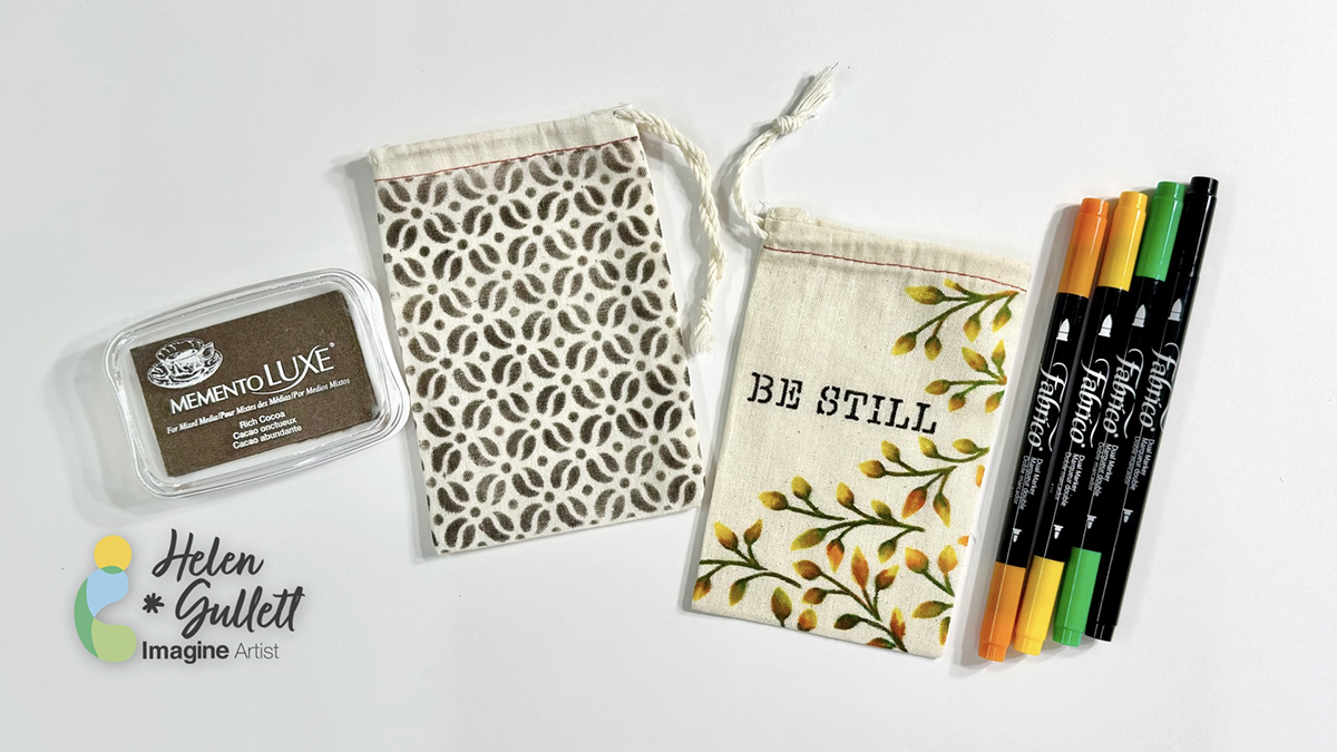 Hello crafty friends! Today’s projects are about how you can personalize any muslin bags or canvas bags by adding patterns, words, or anything you can think of with Fabrico Markers, Memento Luxe ink pads, and stencils. It will be fun projects to make for any occasion gift ideas or even for yourself to use. So, let’s make some together!