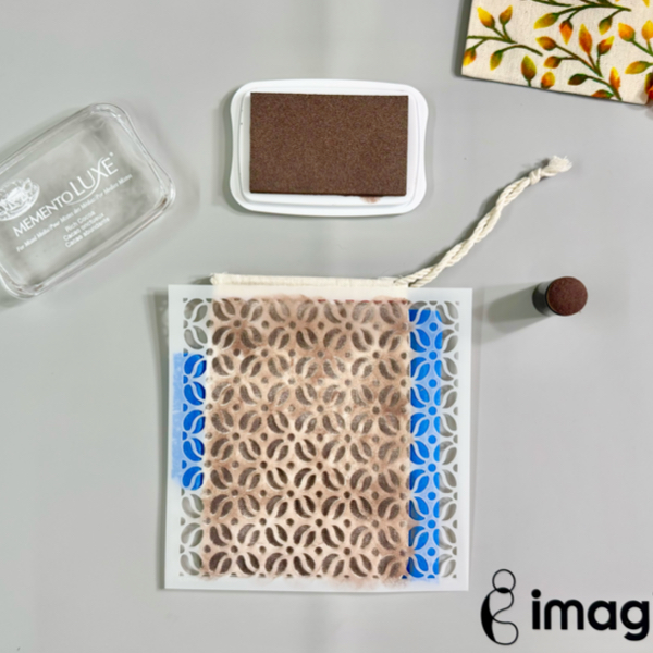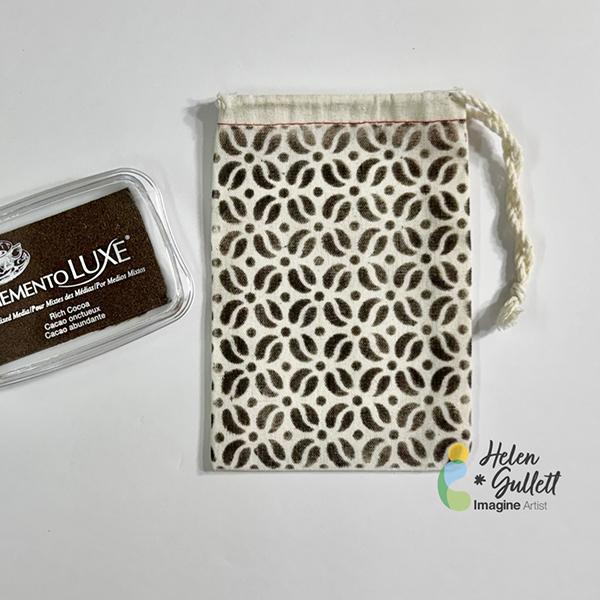 The second technique to personalize a muslin bag you can try is by adding ink directly to the bag with ink pads, sponge daubers, and stencil.