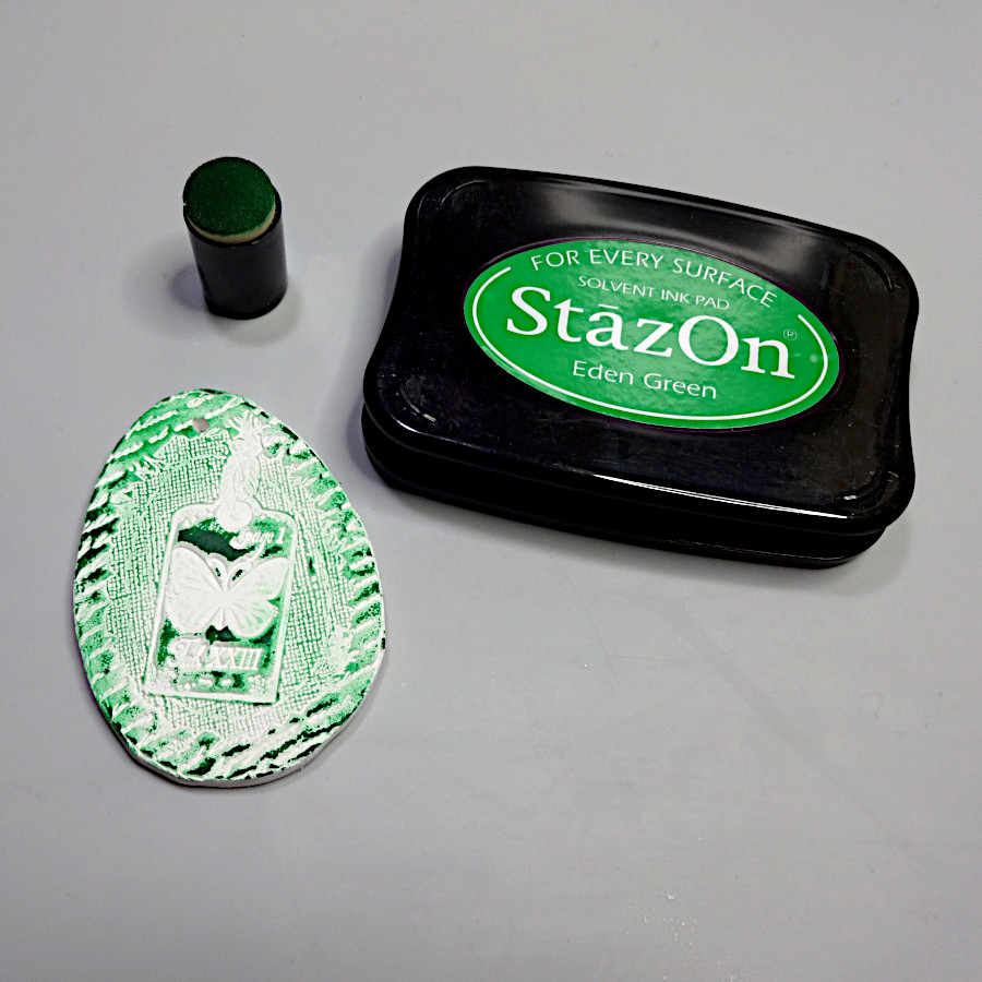 Apply Clear Mboss Embossing Powder to the leaf, shake off the excess, and heat set.
