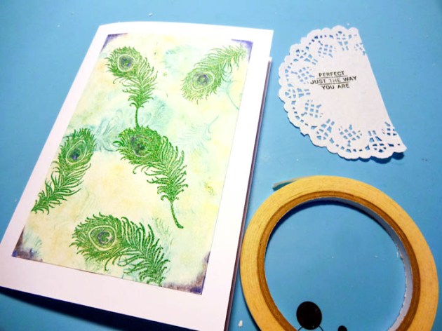 Hello Friends! Katy here with another quick project using All-Purpose Inks. I used my simple swiping technique for the background and then used Vegas Gold All-Purpose Ink to stamp my snowflakes.I kept things even simpler by using a kitchen sponge to ink up my stamps.