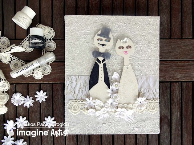 Use On Point Glue to adhere the die-cut cats to the interior of the folded vellum triangle. Sorry that I forgot to take a photo.