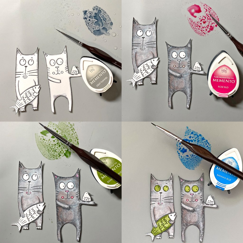 Use the Grassy Hills Die set to cut the inked panels. Use a green Copic marker to edge the grass and to add details. Using Memento Ink to create backgrounds allows you to use Copic markers overtop!