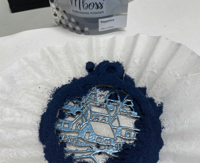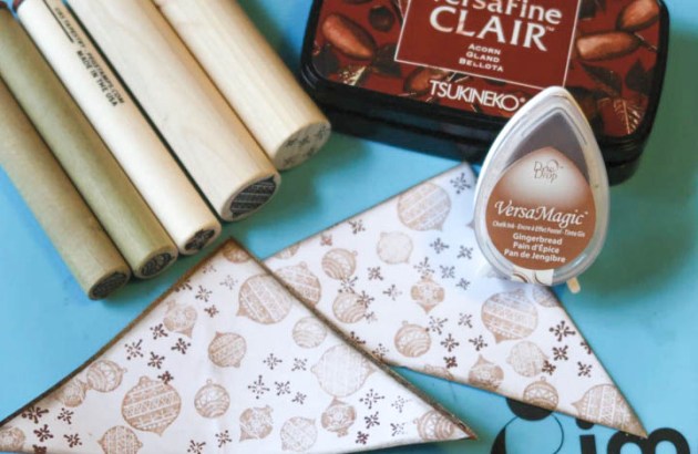 Write lightly the word “Noel” (or any word you want on your ornament) with pencil and then trace it with the Tuxedo Black Memento Marker brush tip. You can skip the pencil if you can do handlettering directly with the marker.