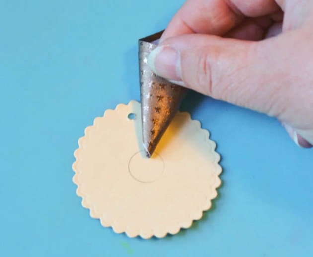 These Memento Markers dry quickly and the ink won’t smudge on the wood surface. Add a piece of burlap twine to the ornament and tie it up as the hanger.