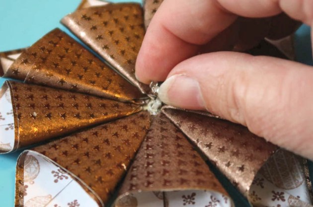 Draw a circle and branches with the Rich Cocoa Memento Marker brush tip. You also can use a circle template to draw the circle.