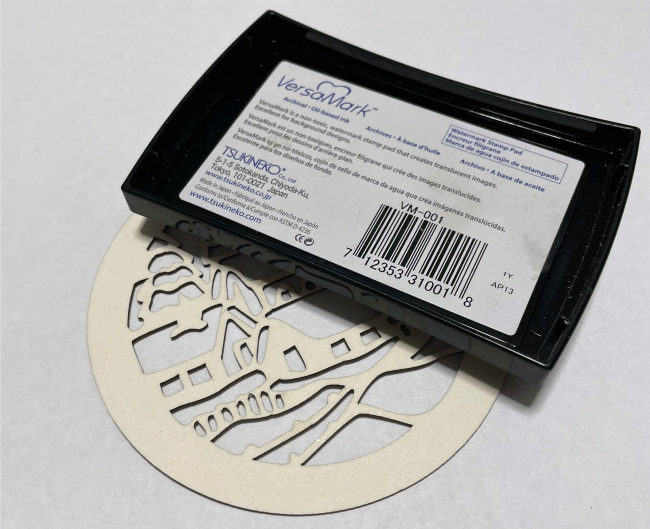 On the wood on a stamping tool and use the magnets to keep it in place or you can use tape on the back of the wood slice and place it on the stamping tool.