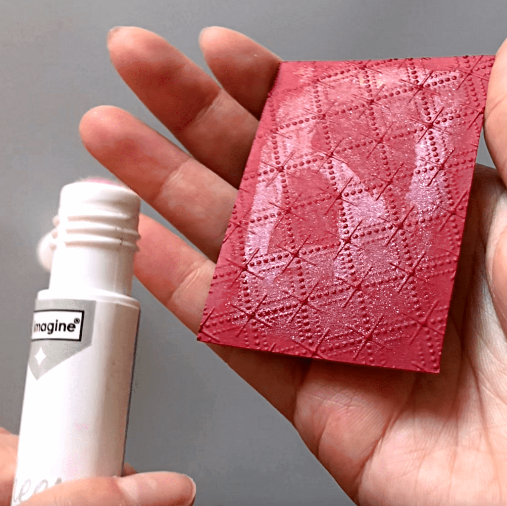 On the dried painted surface, stamp the sentiment using StazON Opaque – Cotton White ink.
