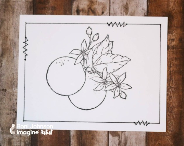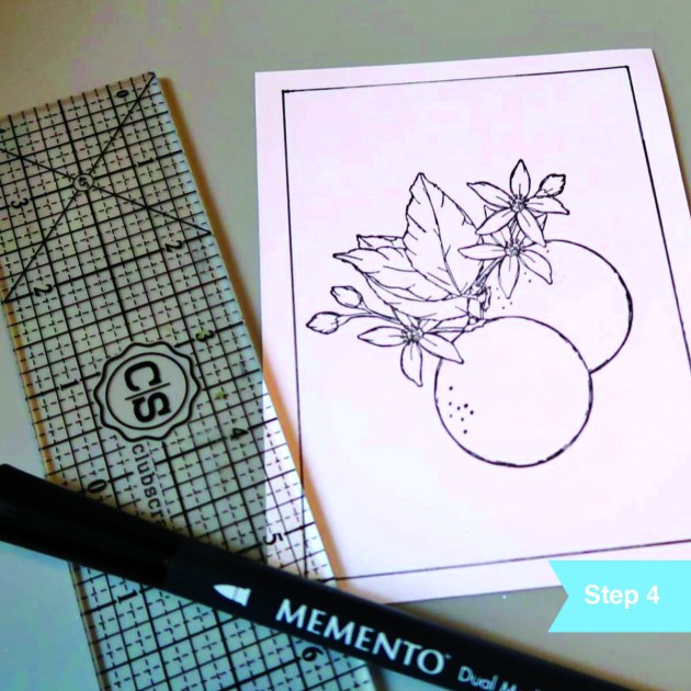 Now you’re going to take a marker, in this case, I’m using the Tuxedo Black Memento Dual Tip Marker to doodle with. It has 2 tips – a brush type marker tip and the other end is like a pen so you can write with it too.