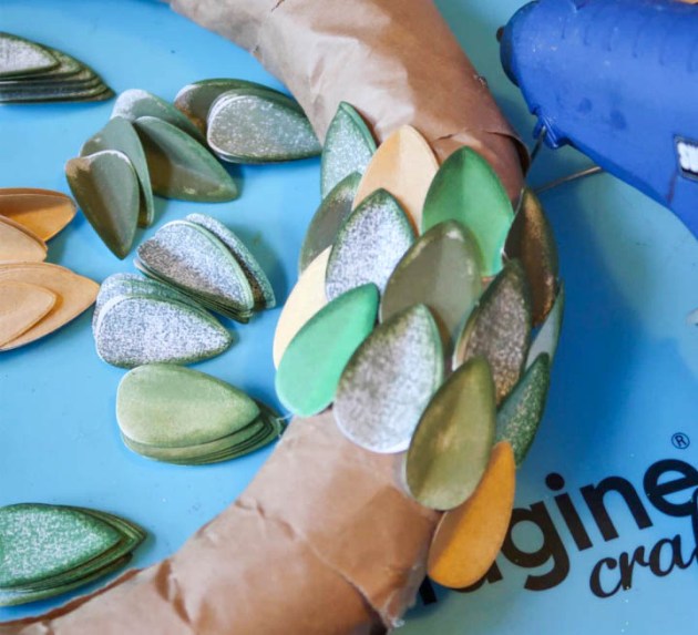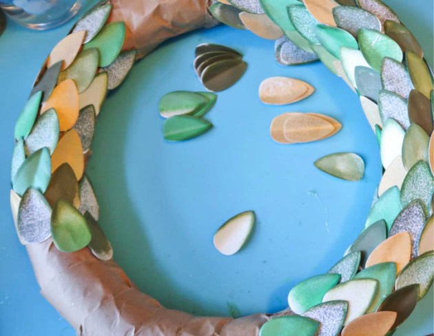 Continue gluing on leaves until the wreath is covered.