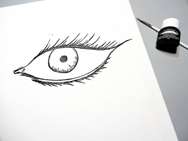 Draw an eye on the canvas with the All-Purpose Ink in Real Black color.