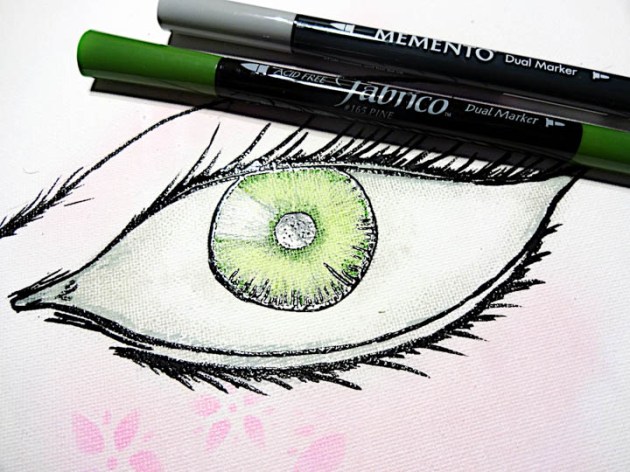 Add details to the iris using Memento London Fog and Fabrico Pine markers.