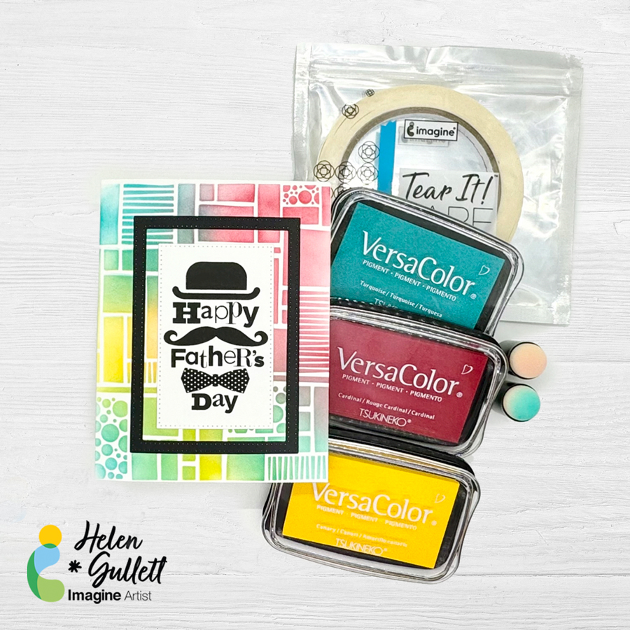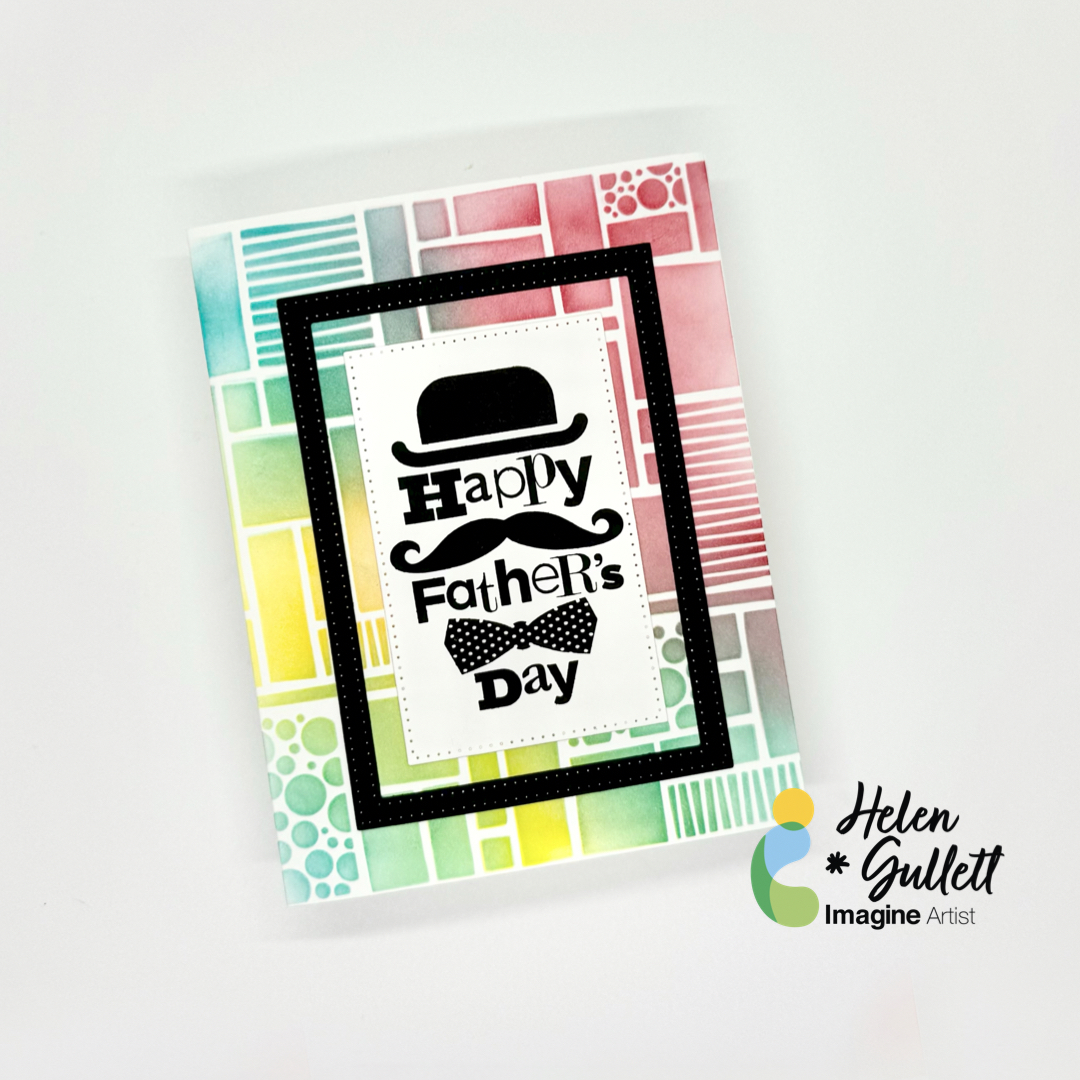 Hello crafty friends! This time, I want to share an idea with you for Father’s Day. This card has a fun colorful stenciled background. It is also not too hard to make.