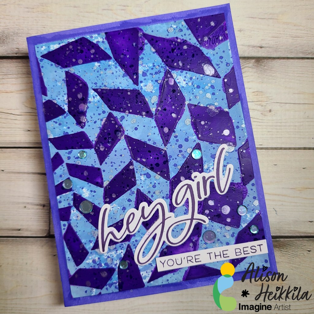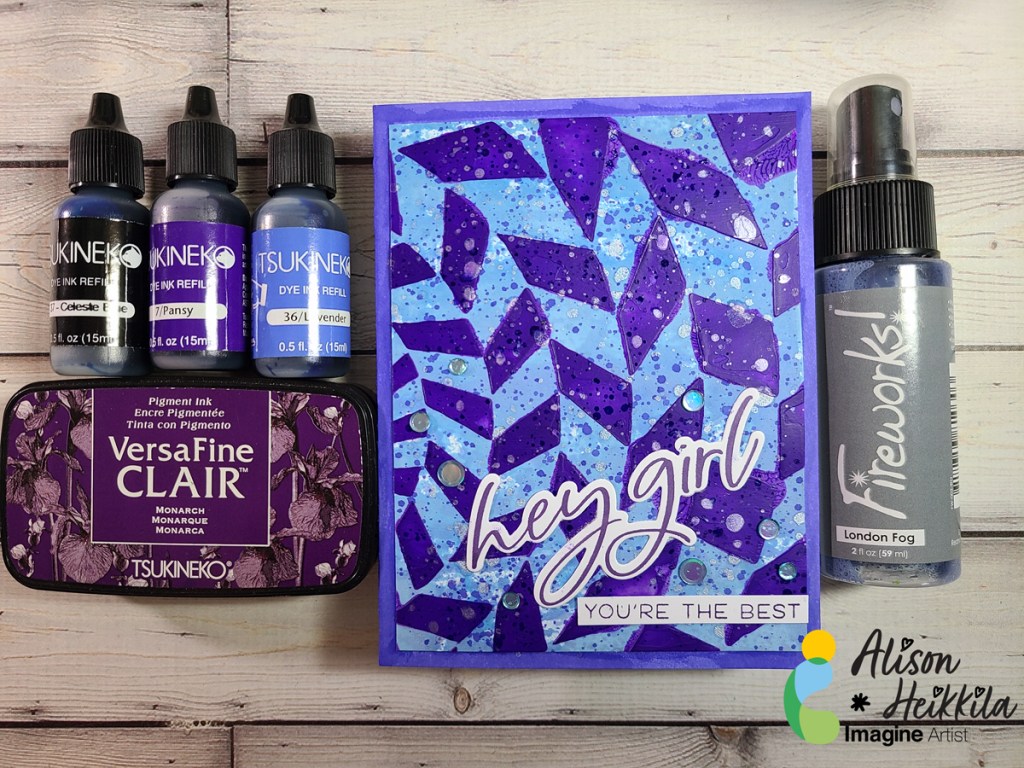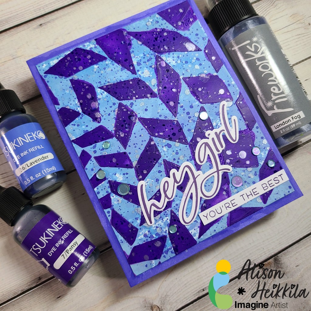 Making backgrounds like these can be so satisfying. Watching the colors swirl together, then seeing the shimmer after they’re dried….it’s a great way to spend some time, especially if you’re not feeling super crafty. What are some of the ways you would use Fireworks! Spray? Be sure to visit Imagine to see all the beautiful colors they come in. Thanks so much for stopping by. Have an inspiring day!