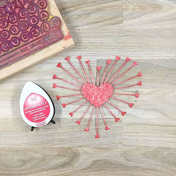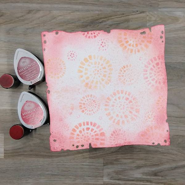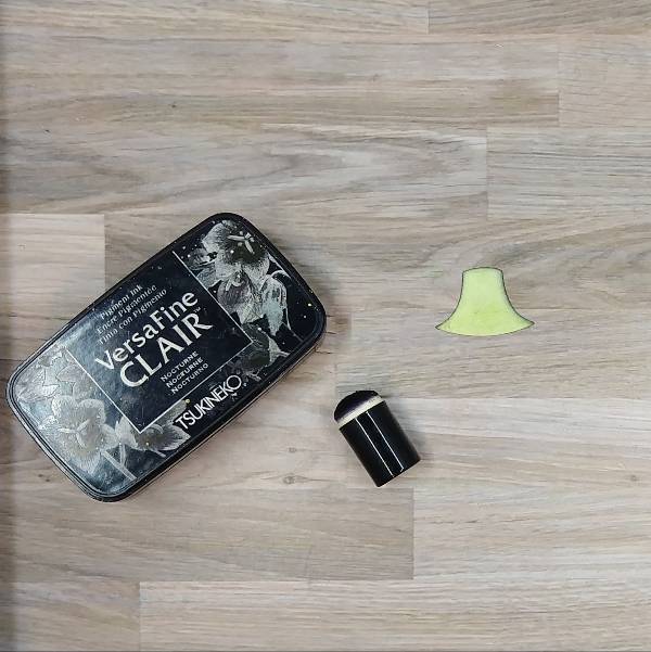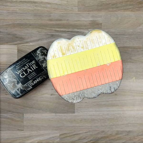 Allow to dry or dry with a heat tool. Then press the edges of the ornament into the ink pad. Allow to dry.