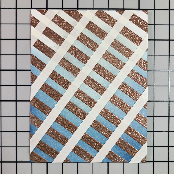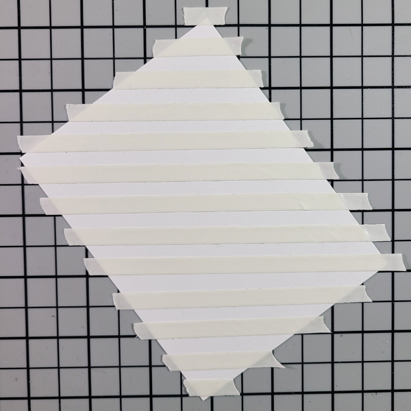 Step 10: Lay the inked panel back on to the grid at a different angle from before and begin laying down more Tear It! Tape. This time, I only applied the tape where the lines were bold, so every inch.