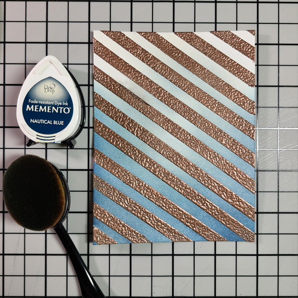 Step 9: Apply Nautical Blue Memento around the Summer Sky Ink, in a “U” shape.