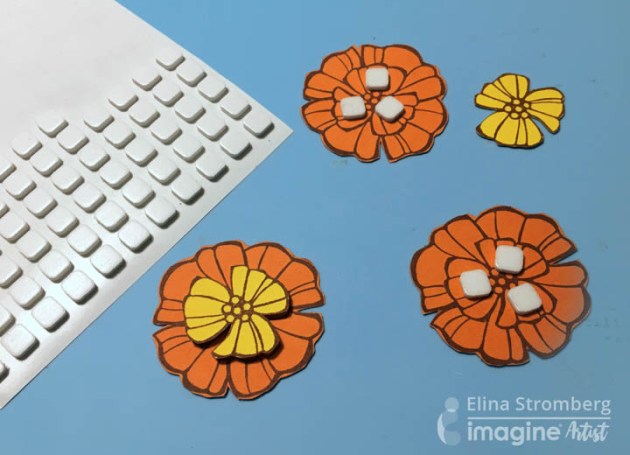 Without stamp the image over the cardstock, ink the stamp partially with the second colors. Keep in mind the parts that you want to look with different shadows.