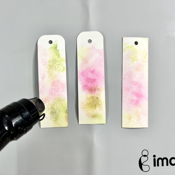 When done with adding watercolor washes on the bookmarks, use the craft heat gun to dry them.